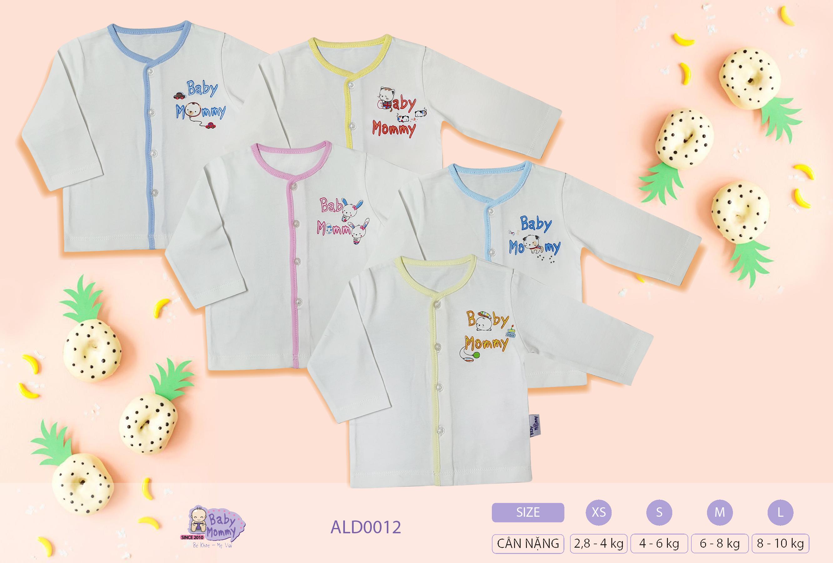 ALD0012 - Áo sơ sinh cổ tim trắng in tay dài BabyMommy