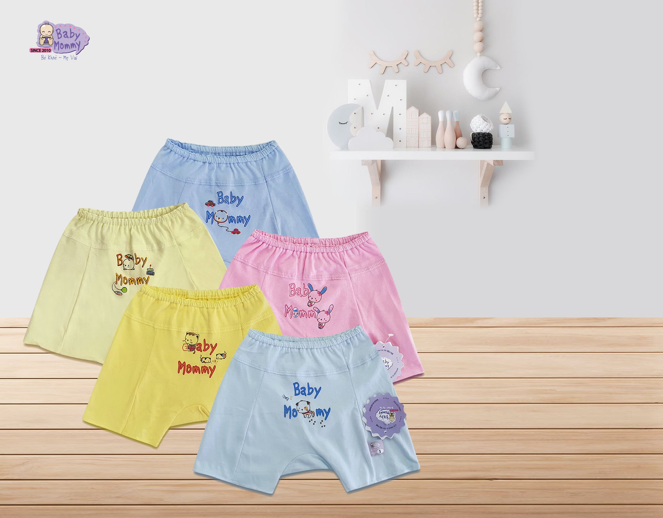 Quần ngắn sơ sinh màu in BabyMommy