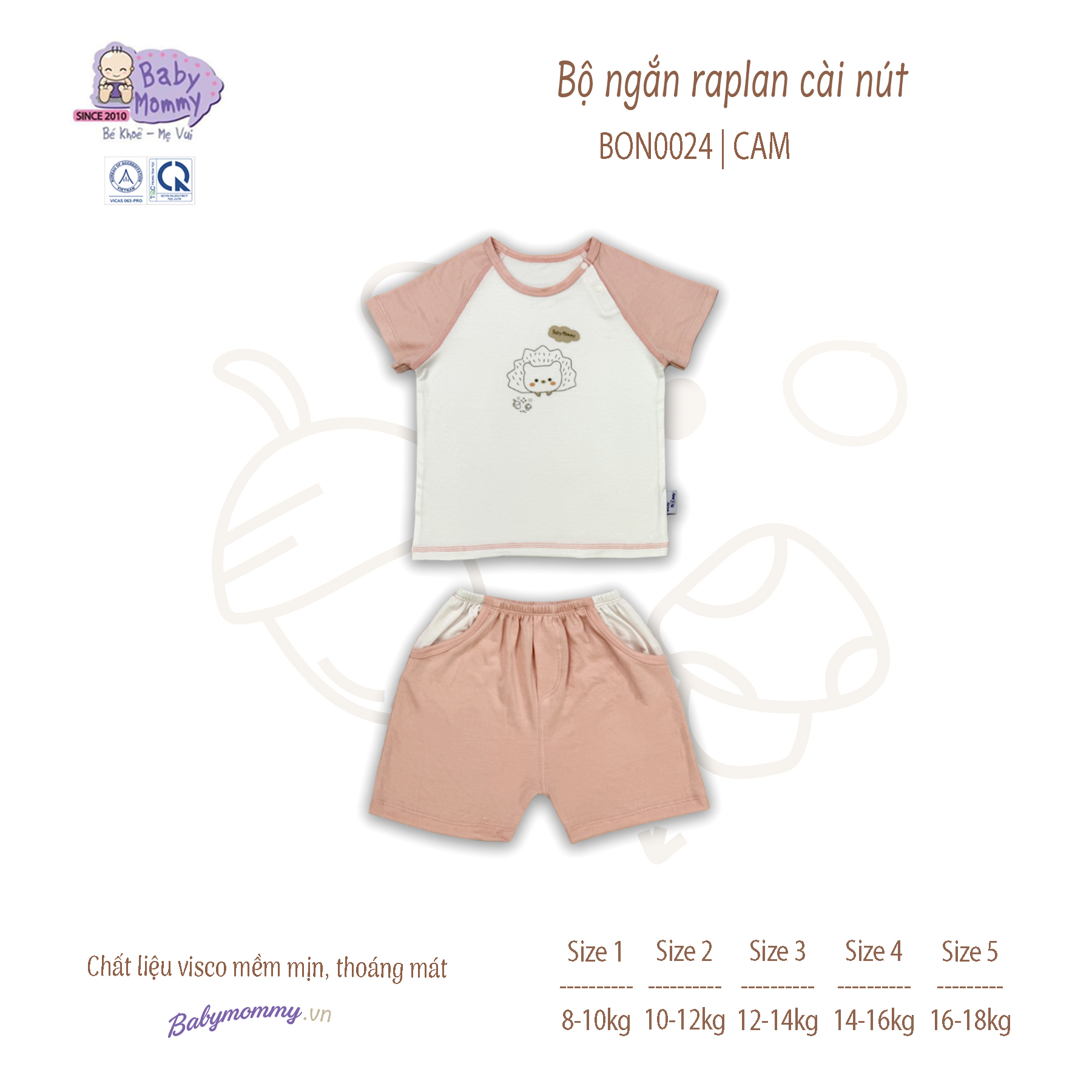 BON0024 - Bộ ngắn raplan cài nút vai BabyMommy